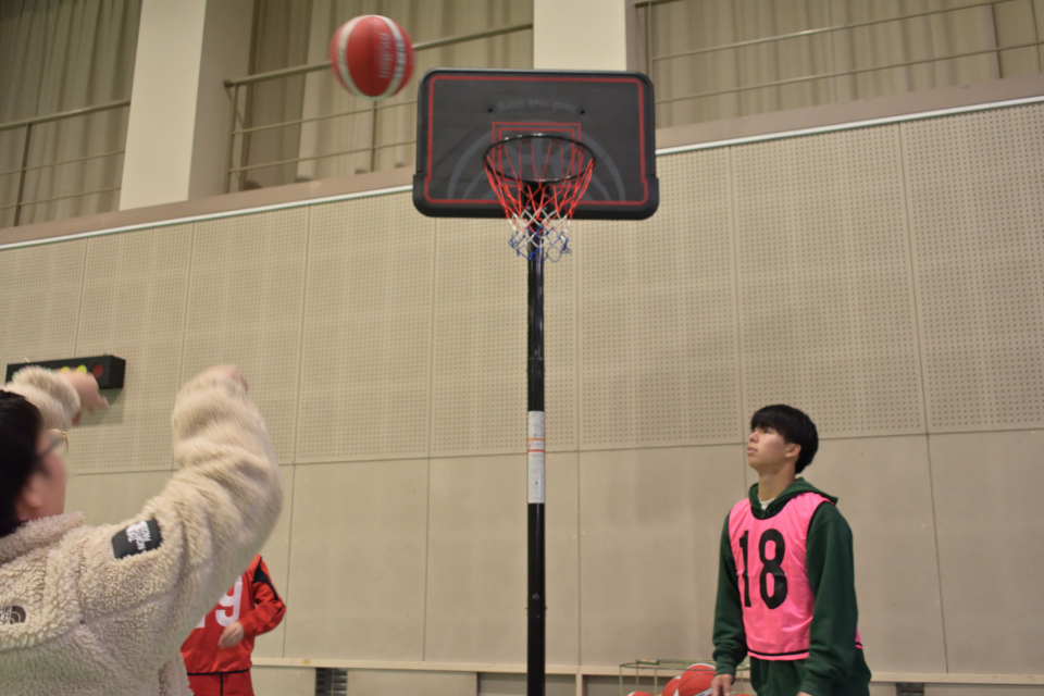 しかし状況は変わらず、さらに隣のコーナーの行列ができているスタンプラリー付近まで移動して呼び込みを実施。やっと人の誘導に成功し、少しずつツインバスケットボールのコーナーも賑わうようになりました。