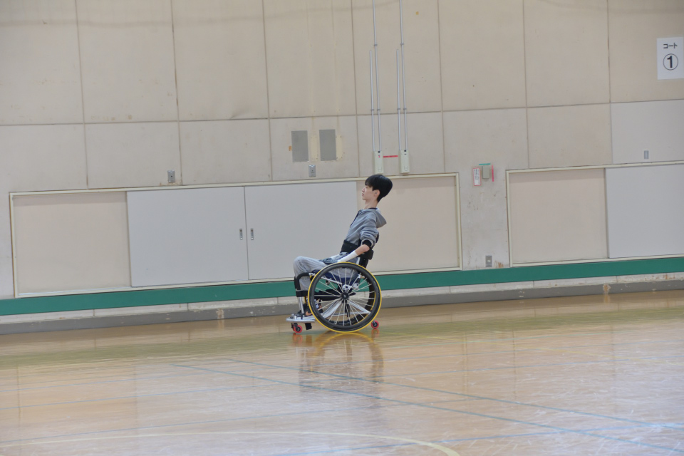 円内選手は今まで試乗したバスケ車の中では一番体に合っている感じでした。スピードも確実に上がっていて、確実にレベルアップしている感じで、その動きを見てとても嬉しくなり頬が緩みました。